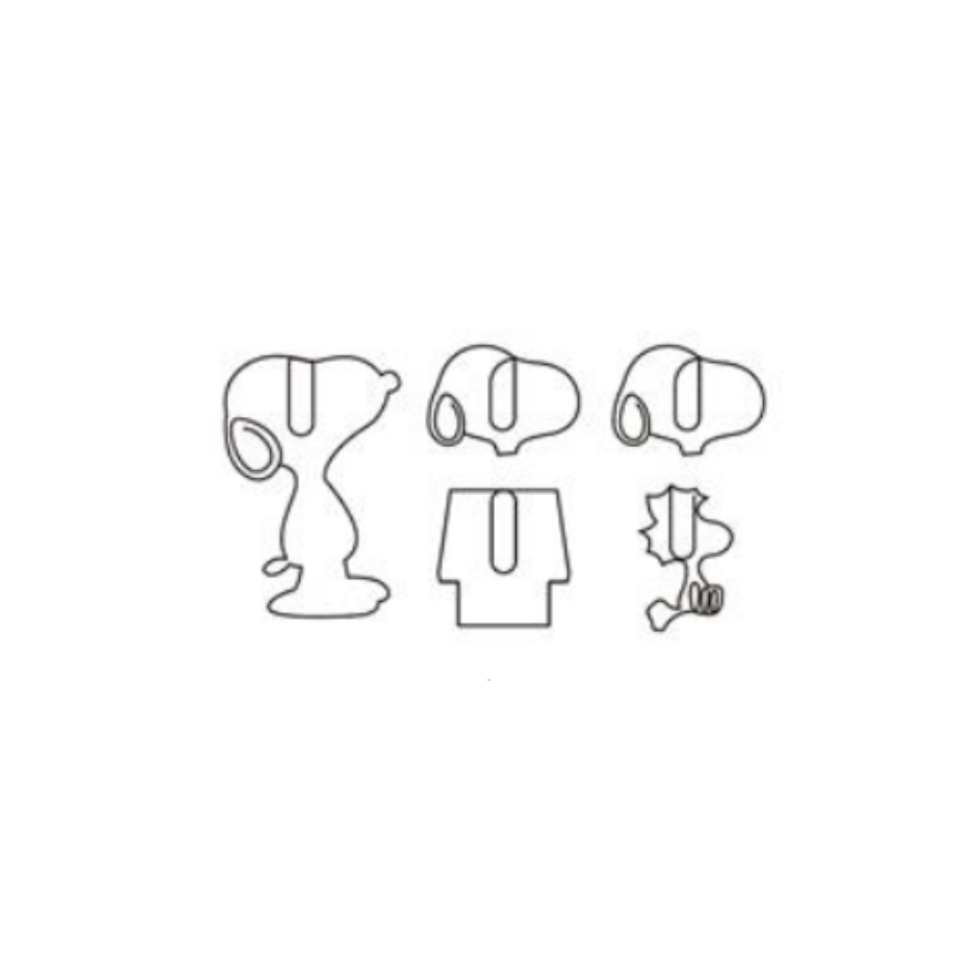 • Set Clip Metalico X5 Formas Snoopy • La imagen muestra el diseño de un set de clips de papel con la forma de Snoopy. • Estos clips, hechos de metal sirven para sujetar hojas de papel y añadir un toque de alegría al espacio de trabajo. • Los clips son un invento del siglo XIX.